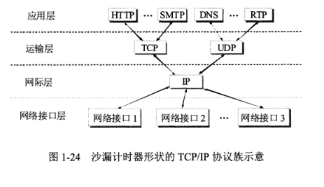 TCP/IP 协议族将计算机网络自上而下分为四层,每一层都有专门的协议。包括:应用层、运输层、网际层、网络接口层。它是事实上的国际标准。